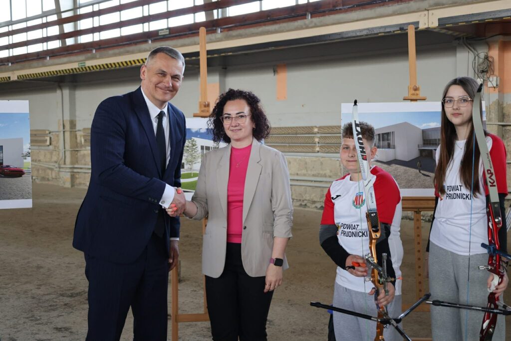 Dziś (24 kwietnia) na terenie hali Obuwnik w Prudniku doszło do podpisania umowy na odbudowę hali Obuwnik, która już końcem 2027 roku będzie częścią Centrum Przygotowań Kadry w łucznictwie, miejscem w którym zawodnicy kadr narodowych będą mogli przygotowywać się na najważniejszych imprez sportowych.